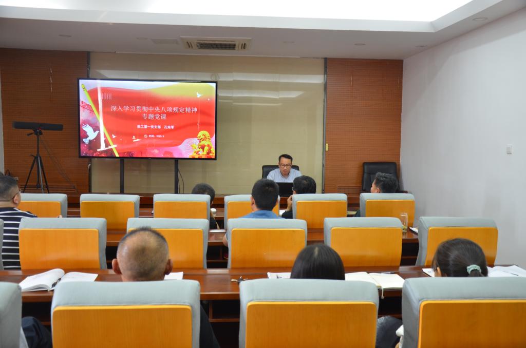 为推进深入贯彻中央八项规定精神学习教育学深走实,持续推进全面从严治党,强化党员干部作风建设,公司党总支举办深入贯彻中央八项规定精神学习教育专题党课,党总支书记贾长响,党总支副书记、经理马鹤,党支部书记孔宪军、孙运表分别面向公司全体党员上党课,宣讲中央八项规定精神。