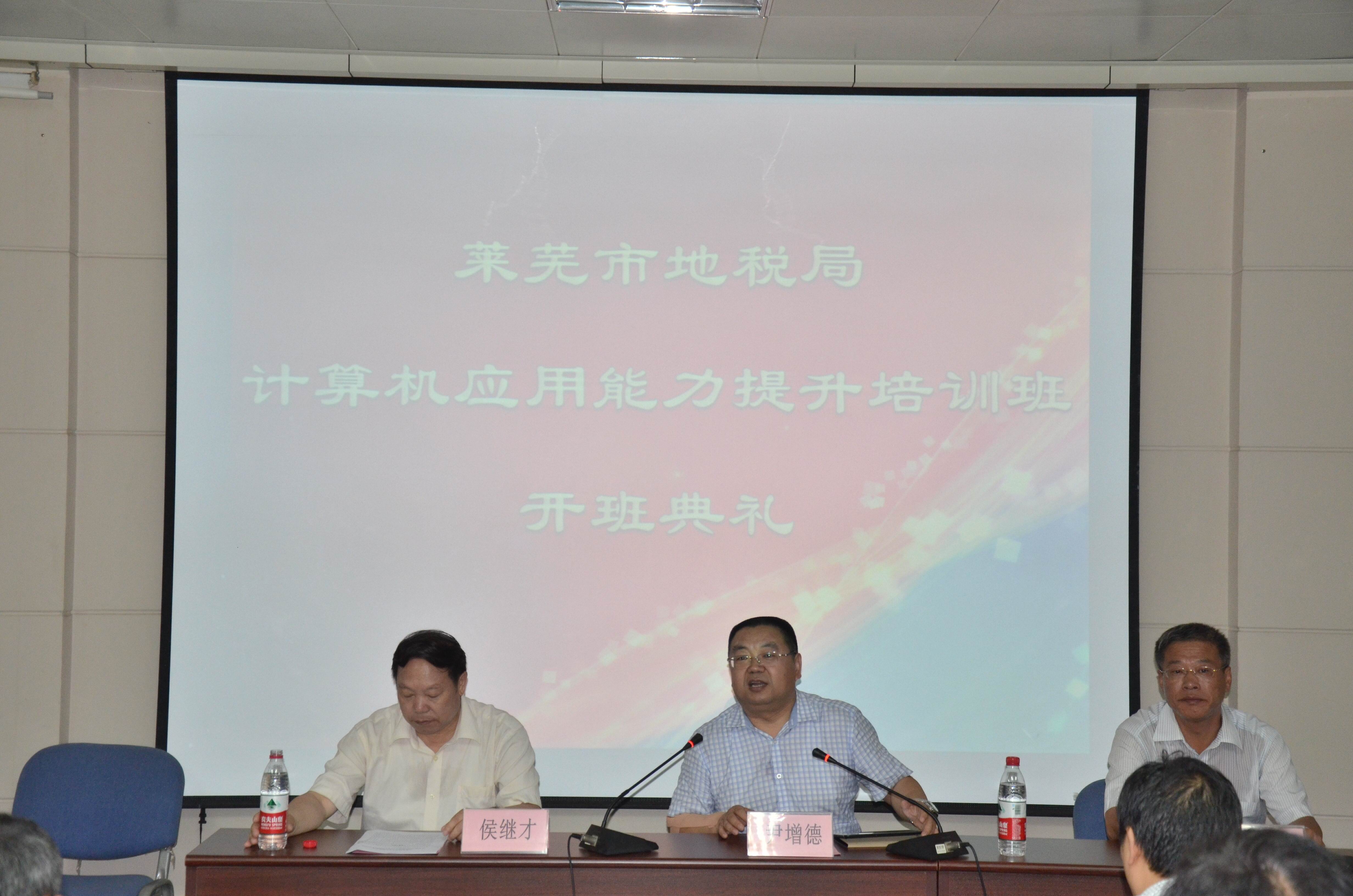 莱芜市地税局干部职工计算机应用能力提升培训班于6月20日上午在BB贝博艾弗森开班。 开班典礼上,BB贝博艾弗森经理尹增德致欢迎辞,并向学员介绍了BB贝博艾弗森办学情况及成人高等教育情况,并就提高认识、珍惜机会、处理好工学矛盾等问题对学员提出了要求和希望。 莱芜市地税局党组成员、副局长侯继才出席并讲话。