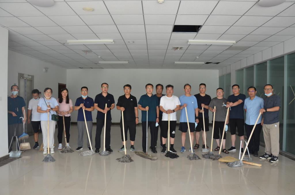 活动中,全体教职工及校区物业中心工作人员顶着炎炎烈日,冒着高温酷暑,手拿扫帚、抹布、簸箕、托把、铁锯等工具,在各自的分工区域内清除垃圾,整个过程,大家分工协助,相互配合,谈笑声中,布满灰尘房间、楼道,长满杂草的空地焕然一新,为国际交流中心的启用做好前期准备。(文:孔宪军,图:赵景美)