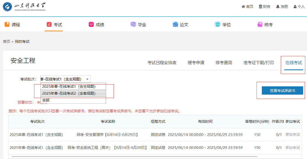 本学期线上考试,有两个考试批次: